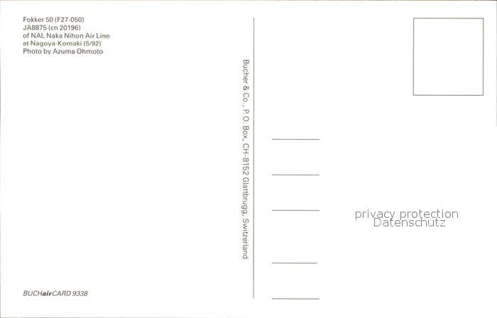 Flugzeuge Zivil Fokker 50 (F27-050) JA 8875 (cn 20196) NAL Naka Nihon Air Line postalisch nicht gelaufen Erhaltung siehe scans