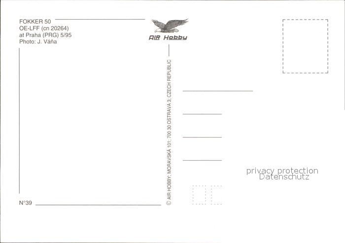 Flugzeuge Zivil Fokker 50 OE-LFF cn 20264 Austrian postalisch nicht gelaufen Erhaltung siehe scans