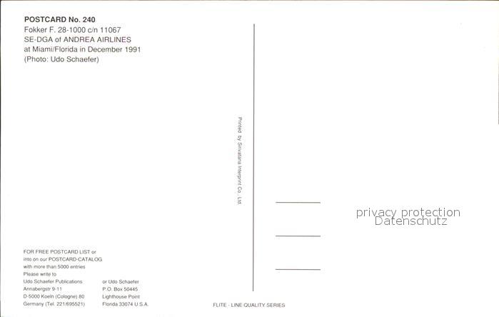 Flugzeuge Zivil Fokker F.28-1000 c/n 11067 SE-DGA Andrea Airlines postalisch nicht gelaufen Erhaltung siehe scans