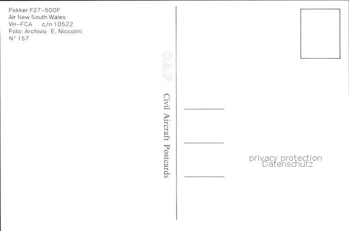 Flugzeuge Zivil Fokker F27-500F Air New South Wales VH-FCA c/n 10522 postalisch nicht gelaufen Erhaltung siehe scans