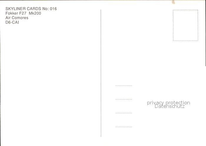 Flugzeuge Zivil Fokker F27 Mk200 Air Comores D6-CAI postalisch nicht gelaufen Erhaltung siehe scans