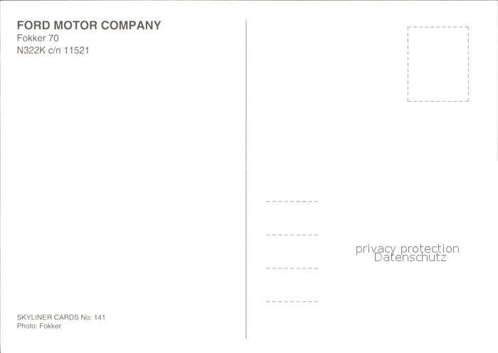 Flugzeuge Zivil Ford Motor Company Fokker 70 N322K c/n 11521 postalisch nicht gelaufen Erhaltung siehe scans