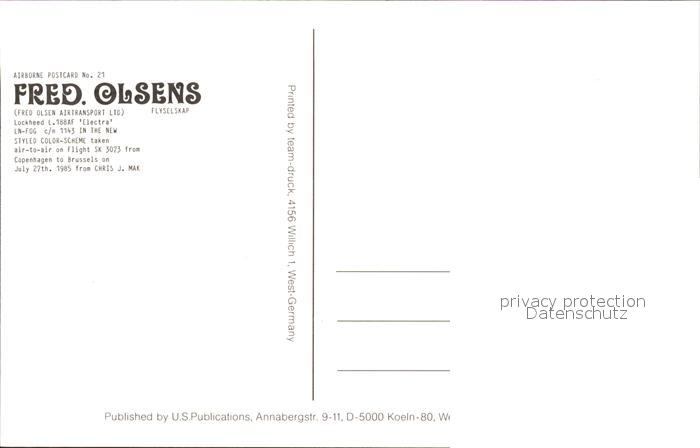 Flugzeuge Zivil Fred Olsen Lockheed L-a88AF Electra LN -FOG c/n 1143 postalisch nicht gelaufen Erhaltung siehe scans