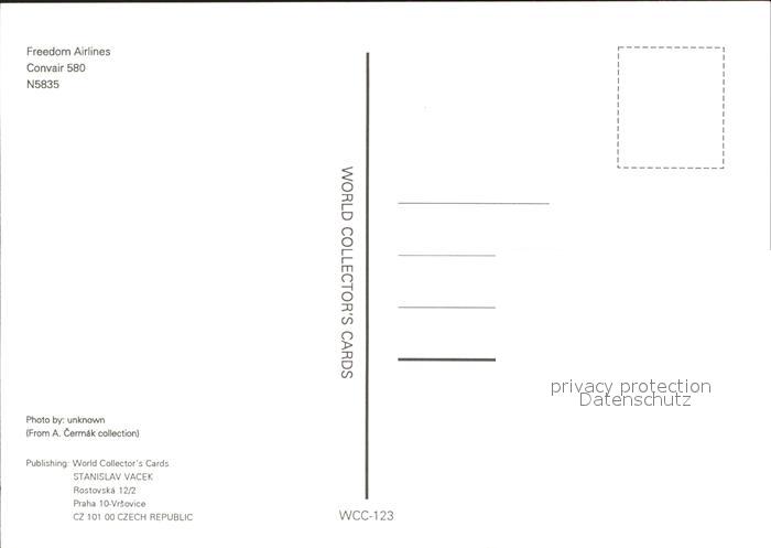 Flugzeuge Zivil Freedom Airlines Convair 580 N5835 postalisch nicht gelaufen Erhaltung siehe scans