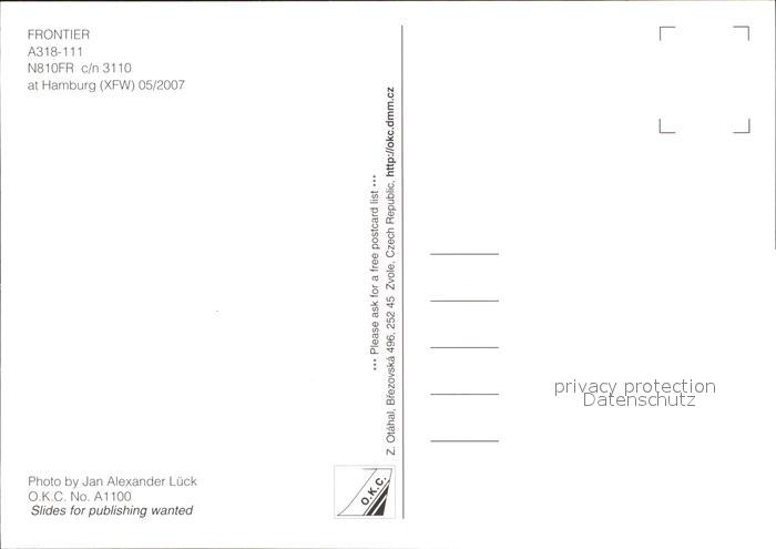 Flugzeuge Zivil Frontier A318-111 N810FR c/n 3110 postalisch nicht gelaufen Erhaltung siehe scans