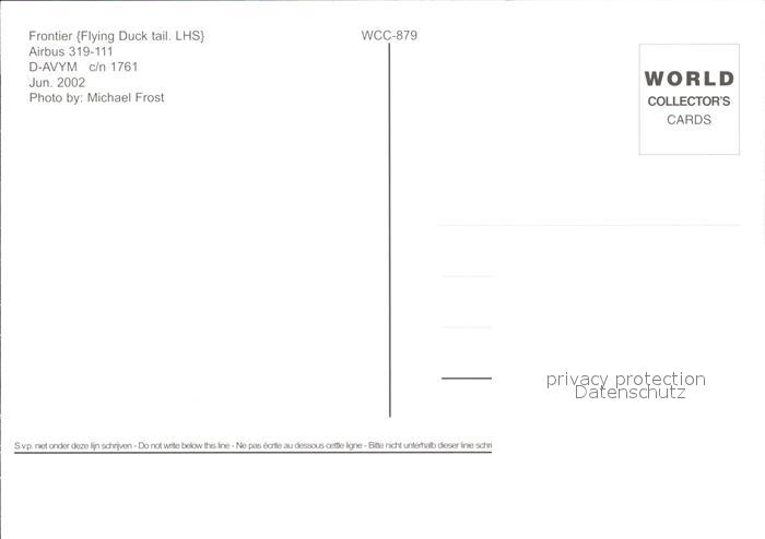 Flugzeuge Zivil Frontier Airbus 319-111 D-AVYM c/n 1761 postalisch nicht gelaufen Erhaltung siehe scans