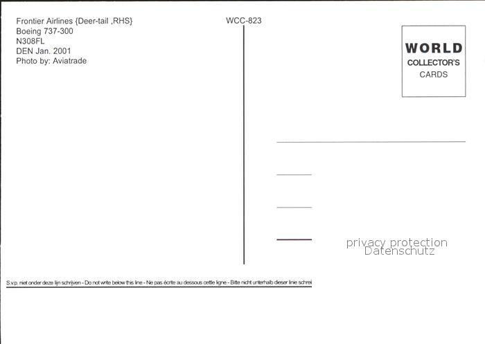 Flugzeuge Zivil Frontier Airlines Boeing 737-300 N308FL postalisch nicht gelaufen Erhaltung siehe scans