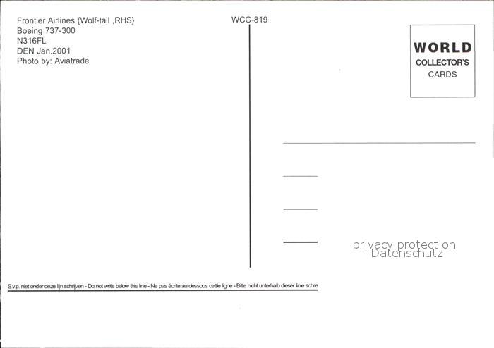 Flugzeuge Zivil Frontier Airlines Boeing 737-300 N316FL postalisch nicht gelaufen Erhaltung siehe scans