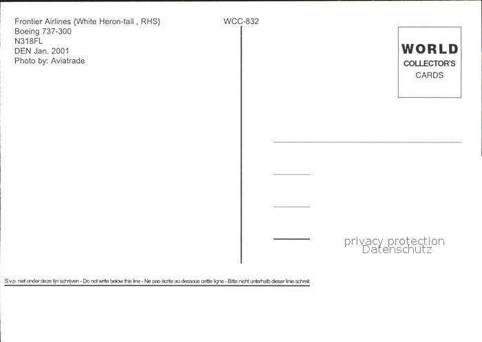 Flugzeuge Zivil Frontier Airlines Boeing 737-300 N318FL postalisch nicht gelaufen Erhaltung siehe scans