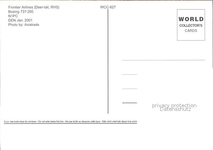 Flugzeuge Zivil Frontier Airlines Deer Tail Boeing 737-200 N1PC postalisch nicht gelaufen Erhaltung siehe scans