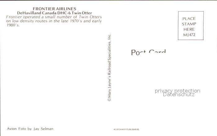 Flugzeuge Zivil Frontier Airlines DeHavilland Canada DHC-6 Twin Otter ‚N983FL postalisch nicht gelaufen Erhaltung siehe scans