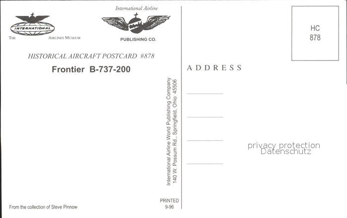 Flugzeuge Zivil Frontier B-737-200 N214AU postalisch nicht gelaufen Erhaltung siehe scans