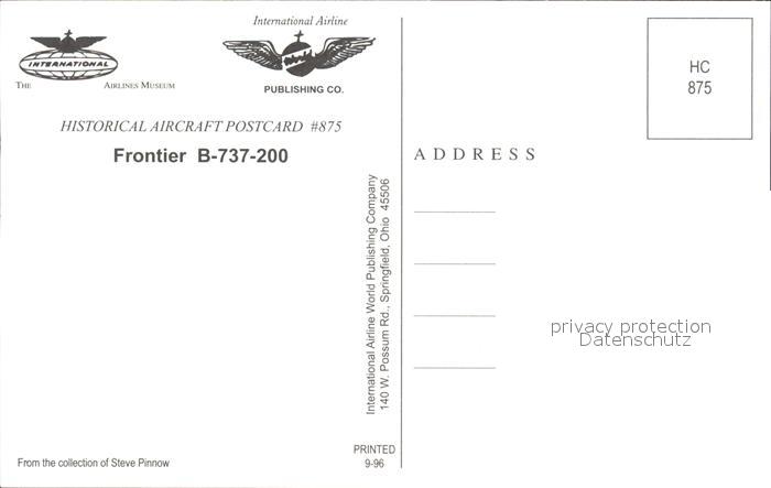 Flugzeuge Zivil Frontier B-737-200 N217US postalisch nicht gelaufen Erhaltung siehe scans
