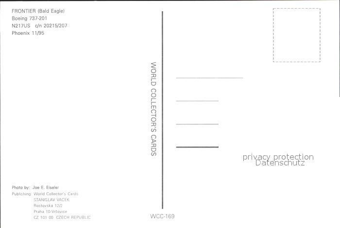Flugzeuge Zivil Frontier Bald Eagle Boeing 737-201 N217US c/n 20215/207 postalisch nicht gelaufen Erhaltung siehe scans