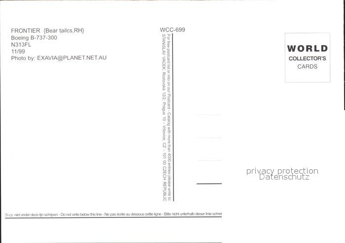 Flugzeuge Zivil Frontier Bear tail colours Boeing 737-300 N313FL postalisch nicht gelaufen Erhaltung siehe scans