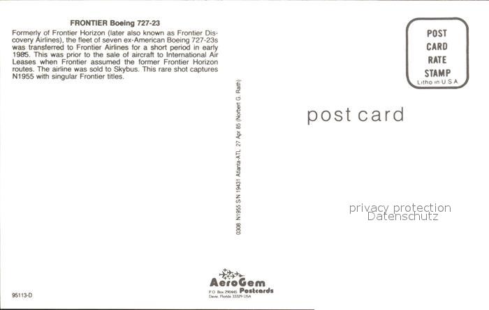 Flugzeuge Zivil Frontier Boeing 727-23 postalisch nicht gelaufen Erhaltung siehe scans