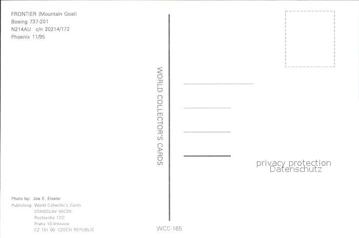 Flugzeuge Zivil Frontier Boeing 737-201 N214AU c/n 20214/172 postalisch nicht gelaufen Erhaltung siehe scans