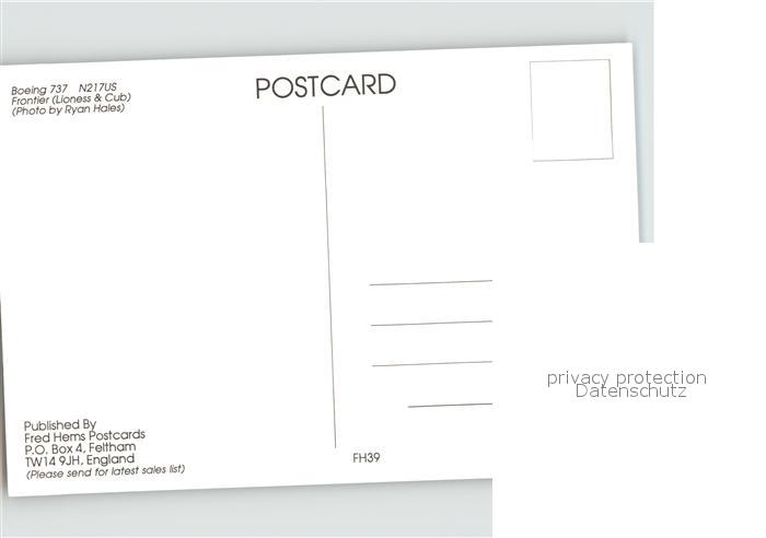 Flugzeuge Zivil Frontier Boeing 737 N217US postalisch nicht gelaufen Erhaltung siehe scans