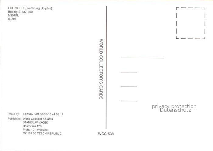 Flugzeuge Zivil Frontier Boeing B-737-300 N307FL postalisch nicht gelaufen Erhaltung siehe scans