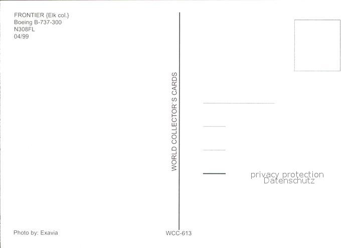 Flugzeuge Zivil Frontier Boeing B-737-300 N308FL postalisch nicht gelaufen Erhaltung siehe scans