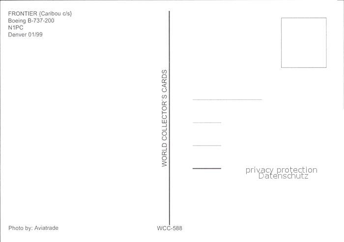 Flugzeuge Zivil Frontier Caribou c/s Boeing B-737-200 N1PC postalisch nicht gelaufen Erhaltung siehe scans