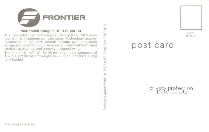 Flugzeuge Zivil Frontier McDonnell Douglas DC-9 Super 80 postalisch nicht gelaufen Erhaltung siehe scans
