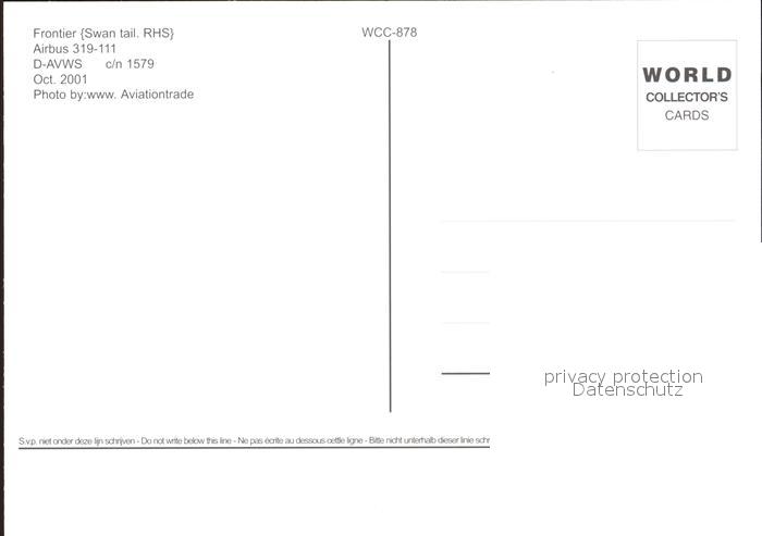 Flugzeuge Zivil Frontier (Swan tail. RHS) Airbus 319-111 D-AVWS c/n 1579 postalisch nicht gelaufen Erhaltung siehe scans