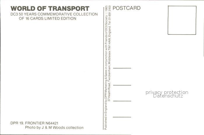 Flugzeuge Zivil Frontier World of Transport DC3 N64421 postalisch nicht gelaufen