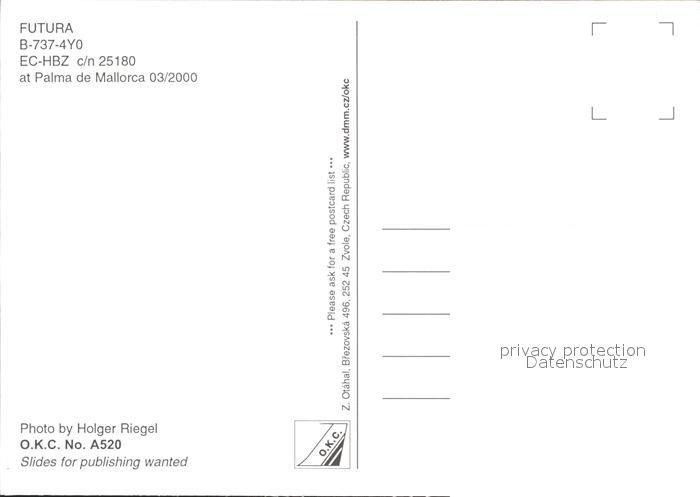 Flugzeuge zivil Futura B-737-4Y0 EC-HBZ c/n 25180 Palma de Mallorca postalisch nicht gelaufen Erhaltung siehe scans