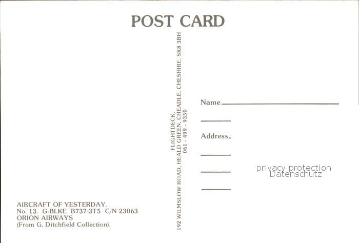 Flugzeuge Zivil G-BLKE B-737-3T5 C/N 23063 Orion Airways postalisch nicht gelaufen Erhaltung siehe scans