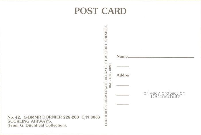 Flugzeuge Zivil G-BMMR Dornier 228-200 c/n 8063 Suckling Airways postalisch nicht gelaufen Erhaltung siehe scans