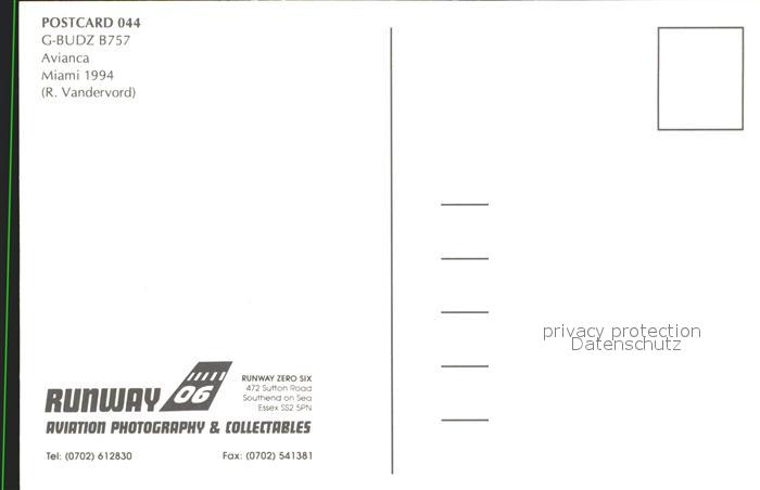 Flugzeuge Zivil G-BUDZ B757 Avianca Colombia postalisch nicht gelaufen Erhaltung siehe scans