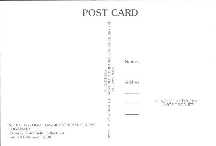 Flugzeuge Zivil G-LOGU BAe Jetstream c/n 720 Loganair postalisch nicht gelaufen Erhaltung siehe scans