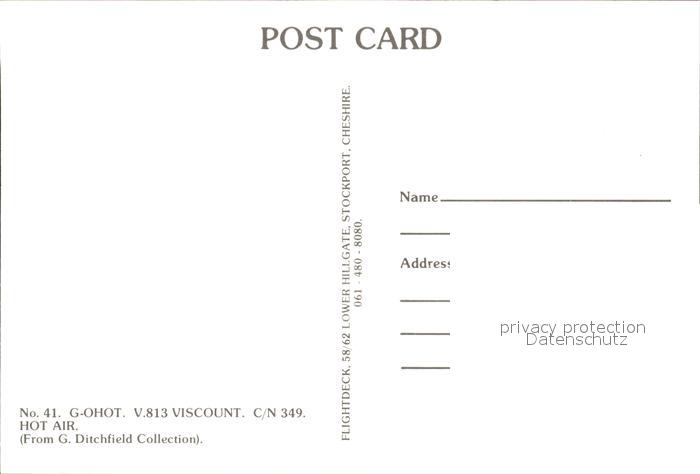 Flugzeuge Zivil G-OHOT V.813 Viscount c/n 349 Hot Air postalisch nicht gelaufen