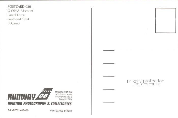 Flugzeuge Zivil G-OPAS Viscount Parcel Force postalisch nicht gelaufen Erhaltung siehe scans