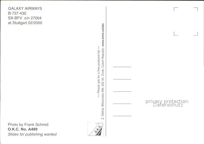 Flugzeuge Zivil Galaxy Airways B-737-430 SX-BFV c/n 27004 postalisch nicht gelaufen Erhaltung siehe scans