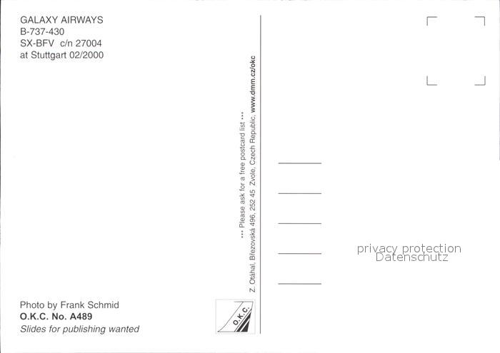 Flugzeuge Zivil Galaxy Airways B-737-430 SX-BFV c/n 27004 postalisch nicht gelaufen Erhaltung siehe scans