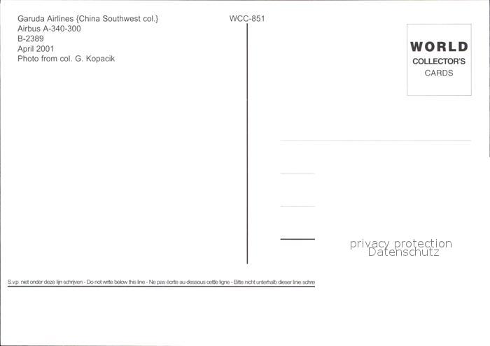 Flugzeuge Zivil Garuda Airlines Airbus A-340-300 B-2389 postalisch nicht gelaufen Erhaltung siehe scans