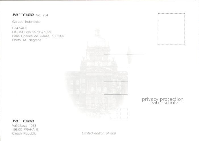 Flugzeuge Zivil Garuda Indonesia B747-4U3 PK-GSH c/n 25705/1029 postalisch nicht gelaufen Erhaltung siehe scans