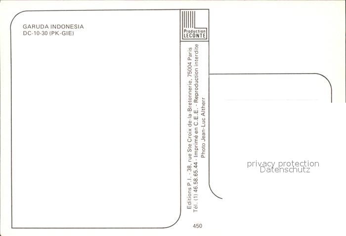 Flugzeuge Zivil Garuda Indonesia DC-10-30 PK-GIE postalisch nicht gelaufen Erhaltung siehe scans