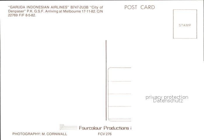Flugzeuge Zivil Garuda Indonesian Airways B747-2U3B c/n 22769 F/F 8-5-82 postalisch nicht gelaufen Erhaltung siehe scans