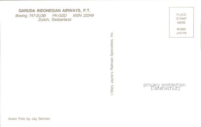 Flugzeuge Zivil Garuda Indonesian Airways P.T. Boeing 747-2U3B PK-GSD MSN22249 postalisch nicht gelaufen Erhaltung siehe scans