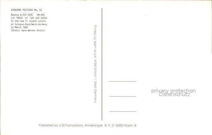 Flugzeuge Zivil Gas Air Cargo Boeing B707-338C 5N-ARQ c/n 18809 postalisch nicht gelaufen Erhaltung siehe scans