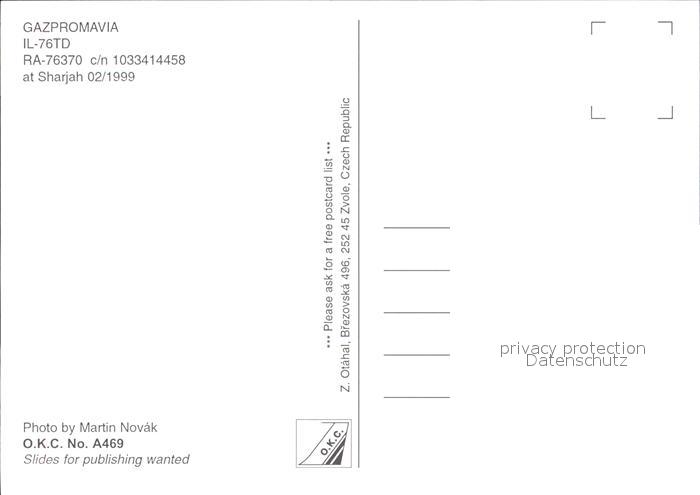 Flugzeuge Zivil Gazpromavia IL-76TD RA-76370 c/n 1033414458 postalisch nicht gelaufen Erhaltung siehe scans
