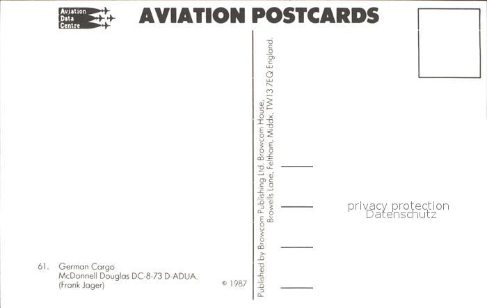 Flugzeuge Zivil German Cargo McDonnell Douglas DC-8-73 D-ADUA postalisch nicht gelaufen Erhaltung siehe scans