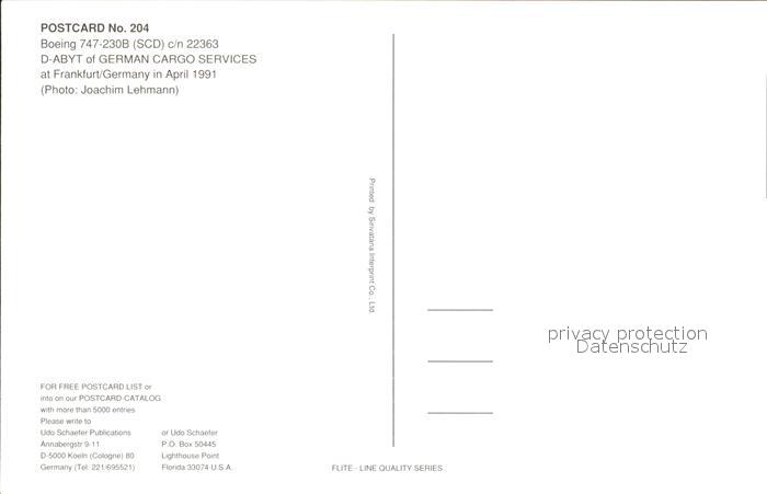 Flugzeuge Zivil German Cargo Services Boeing 747-230B c/n 22363 D-ABYT postalisch nicht gelaufen Erhaltung siehe scans