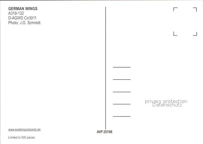 Flugzeuge Zivil German Wings A319-132 D-AGWD Cn3011 postalisch nicht gelaufen Erhaltung siehe scans
