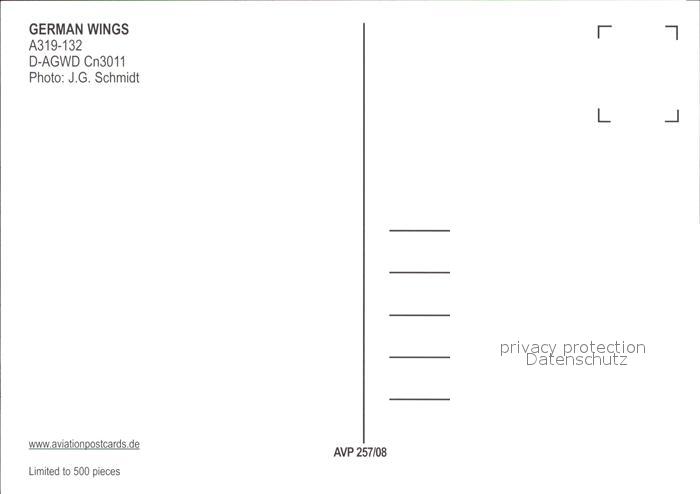 Flugzeuge Zivil German Wings A3w19-132 D-AGWD cn 3011 postalisch nicht gelaufen Erhaltung siehe scans
