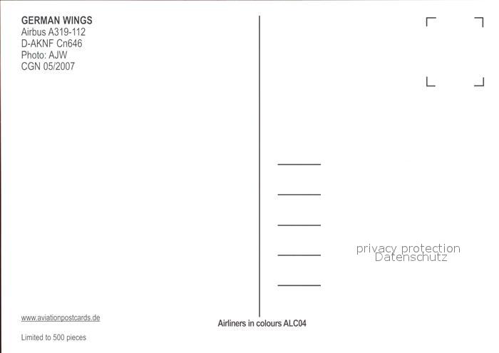 Flugzeuge Zivil German Wings Airbus 319-112 D-AKNF Cn646 postalisch nicht gelaufen Erhaltung siehe scans