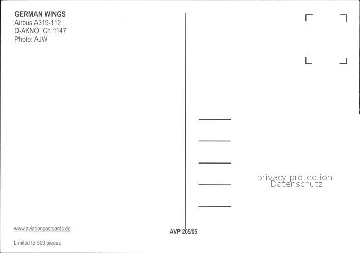 Flugzeuge Zivil German Wings Airbus A319-112 D-AKNO Cn 1147 postalisch nicht gelaufen Erhaltung siehe scans
